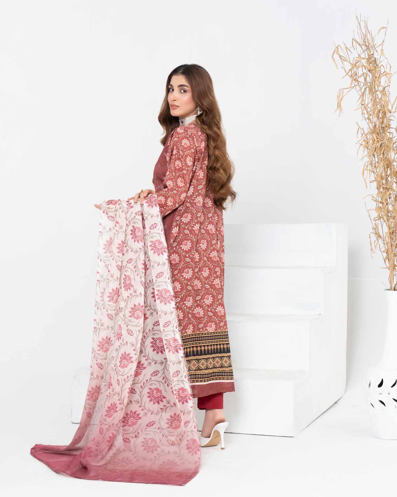 A printed and embroidered Bana Dora lawn shirt, matched with a soft silk dupatta featuring artistic print. Includes plain dyed...