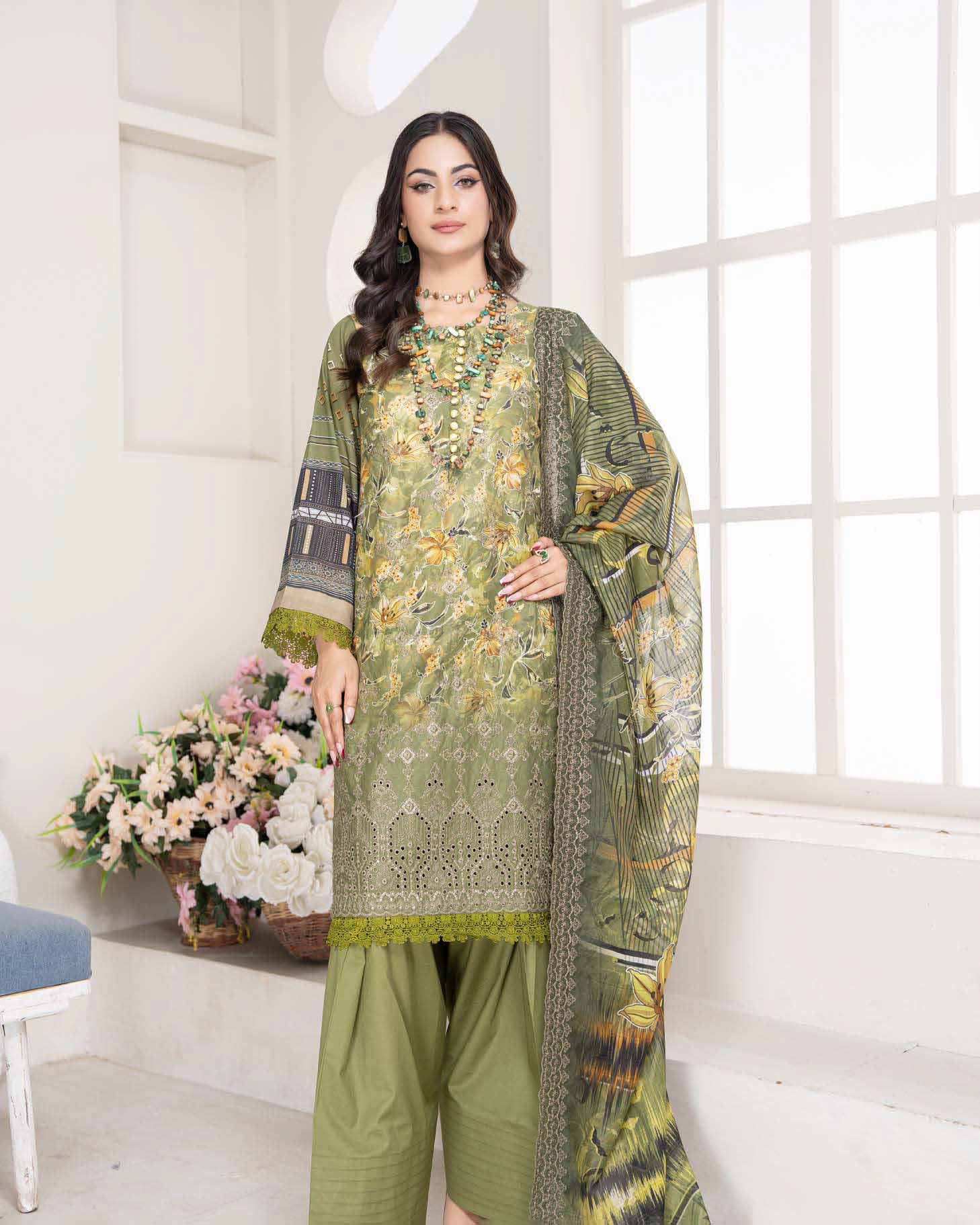 A clean digital print anchors the shirt, lifted by tonal embroidery across the front and a daman border that gives...