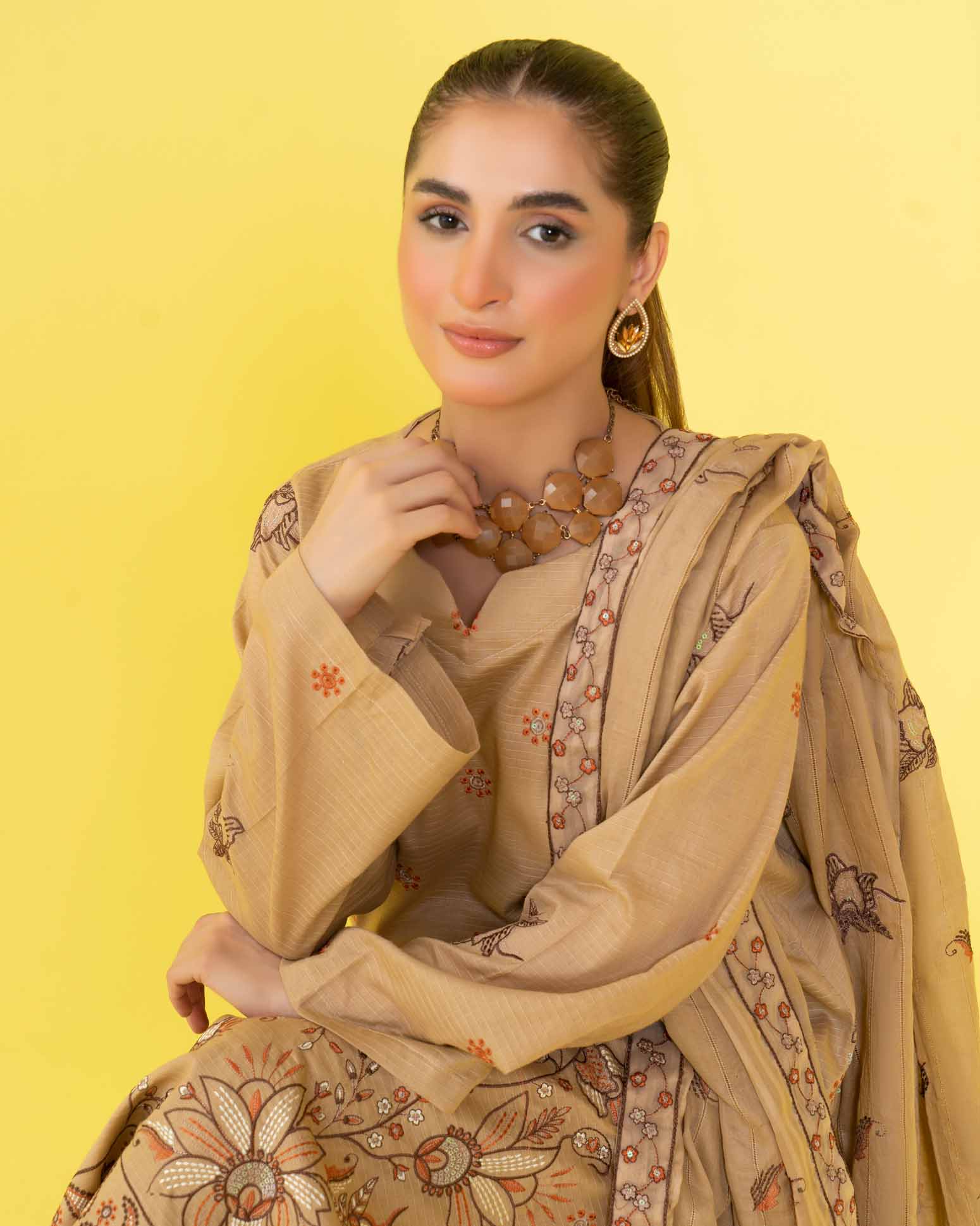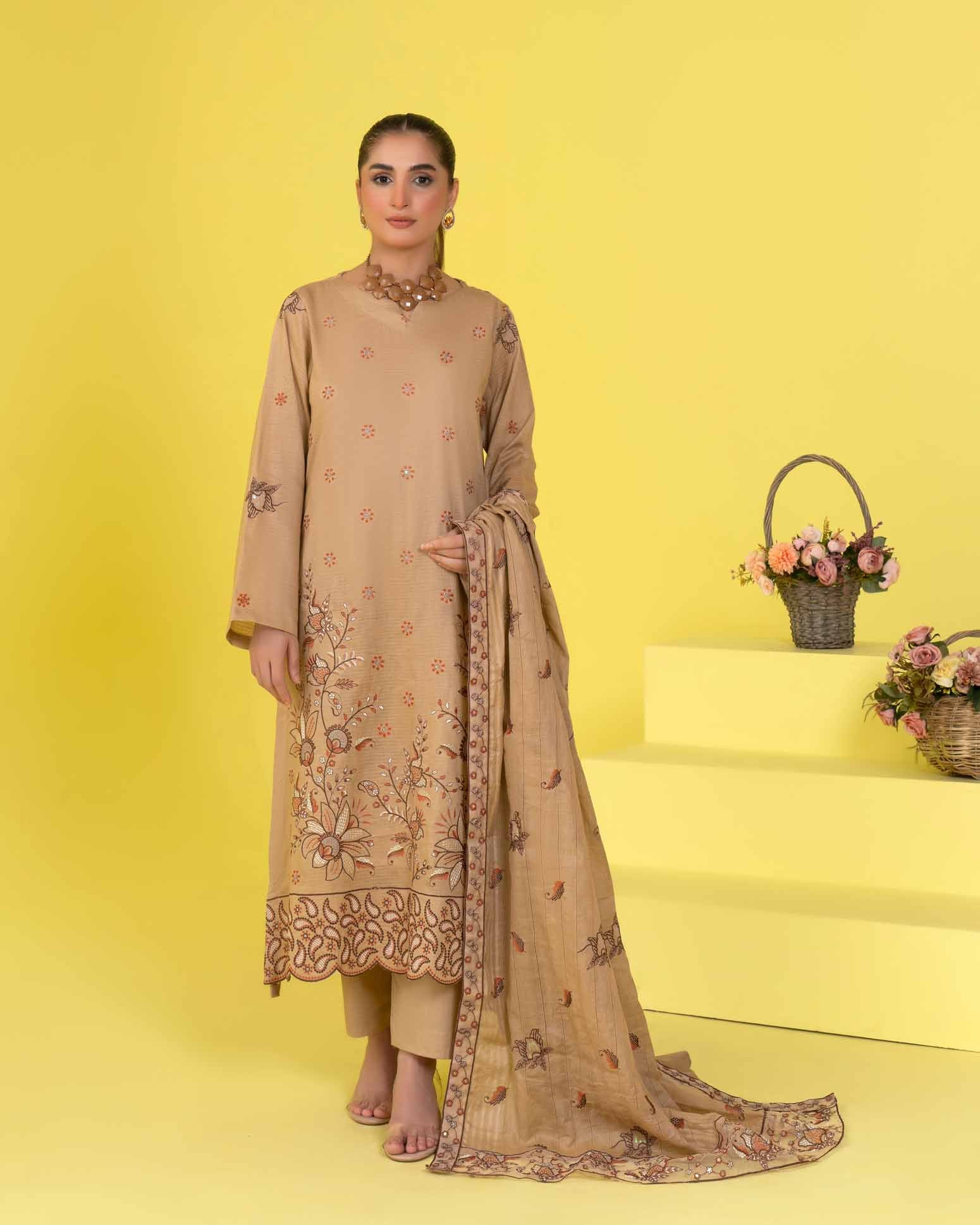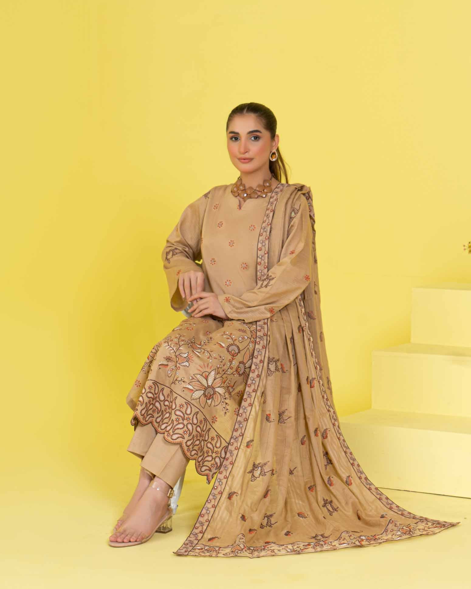 This three-piece suit is designed for effortless dressing without sacrificing detail. The lawn shirt features embroidery on the front panel,...